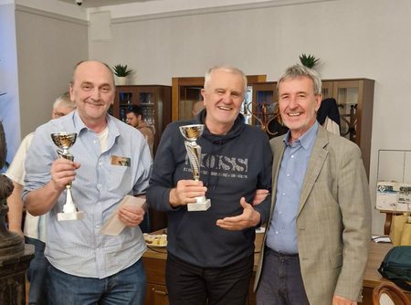 47. mednarodni bridge turnir parov21.04.2026Memorial postojnskih legend Vilka Kledeta in Mateja Gavrana 47. mednarodni bridge turnir parov PostojnskI bridge klub je letos 17. aprila ponovno uspešno organiziral tradicionalni mednarodni turnir parov. Prvič je bil turnir organiziran že leta 1969, ob nekaj prekinitvah je bil tokrat že sedeminštiridesetič in tako drži sloves turnirja z najdaljšo tradicijo v Sloveniji. S poimenovanjem turnirja se spominjajo postojnskih legend bridža, Vilka Kledeta in Mateja Gavrana. Na turnirju je tekmovalo 60 parov in povsem napolnilo dvorano hotela Center, kjer so nas zopet gostoljubno sprejeli. Gostili smo igralce iz Slovenije, Hrvaške, Italije, Avstrije ter celo igralca ZDA in Velike Britanije. Zmagala sta Hrvata Slobodan Babić in Dario Beban, druga sta bila slovenska igralca Bojan Ambrož in Janko Mijoč, tretja pa Italijana Duilio Gruner in Giorgio Contento