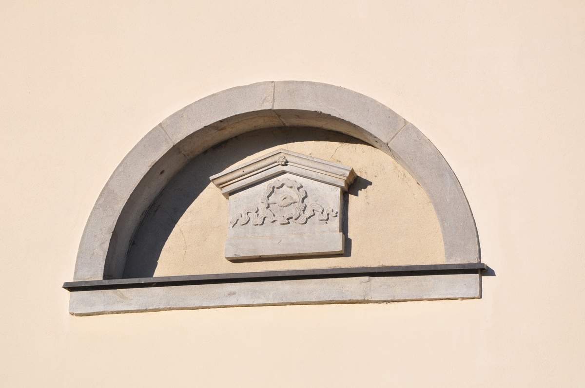 Nad portalnim vhodom, obrobljenim z rustiko, je vzidana kamnita plošča, ki sporoča, da je bil stolp zgrajen v času škofa Pompeja grofa Coroninija leta 1639. Na obeh notranjih straneh vhodne lope sta vzidani kamniti baročni kartuši, ki izvirata iz velikega oltarja. Pravokotna portala, ki sta nekdaj vodila v stranski ladji, sta sedaj zazidana in uokvirjata stara nagrobnika iz srede 19. stoletja. Nad njima sta po dve polkrožno zaključeni kamniti okni, zaprti z lunetnimi marmornimi reliefi. Celotno pročelje zaključuje kamnit talni zidec. Levo zakristijo so prizidali leta 1752, skupaj z desno pa sta bili deležni prenove leta 1891. Med letoma 1936 in 1938 so cerkev temeljito predelali, obema ladjama vzidali po tri okna in eno okroglo, prezbiterij pa dodatno osvetljujeta dve šilasto zaključeni okni. Pred tem so bili narisani tudi načrti za popolnoma novo cerkev, ki bi bila zgrajena v neogotskem slogu, staro pa bi do tal podrli. Korenit poseg je padel v vodo zaradi pomanjkanja finančnih sredstev. Ob prenovi so obe stranski ladji podaljšali skoraj do zahodne stene zvonika in oblikovali novo pročelje, ki vizualno poveča izgled in imenitnost sakralne stavbe. Robovi pročelja in zvonika so okrašeni s kamnitimi šivanimi vogali. Pročelje in zvonik sta bila v letu 2017 na novo ometana in prebarvana v avtentično svetlo rumeno barvo, streha zvonika pa je bila prebarvana leta 2013. V zvoniku visijo trije zvonovi, največji in najstarejši v premeru 1,5 m je iz leta 1896 in tehta 1838 kg. Manjša dva, izdelek livarne Lapagna iz Trsta, sta bila izplačana iz vojne odškodnine iz leta 1922. Zvonove in ogredje v zvonišču so obnovili v lanskem letu. Na južni strani cerkve je prizidana kurilnica. Nedavno so obnovili tudi kamniti zid, ki cerkveno ploščad ločuje od parkirišča.