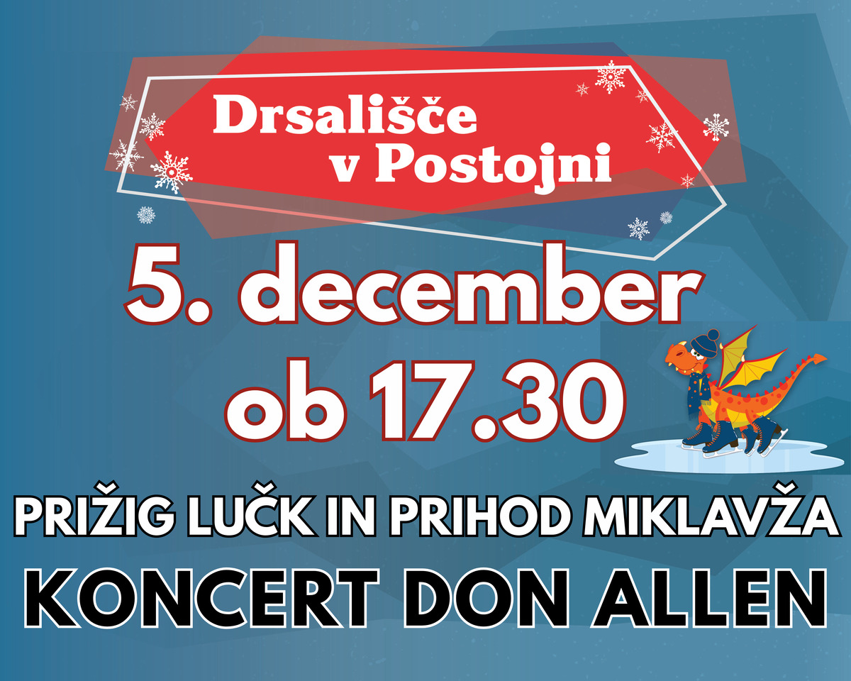 V Postojni se začenja čas, ko mesto zažari v prazničnih barvah, osrednje dogajanje pa tudi letos prinaša drsališče na Titovem trgu. Ledena površina bo znova središče zimskih doživetij, kjer bodo obiskovalci vseh starosti lahko uživali v športnih in družabnih trenutkih. Slovesno odprtje bo v petek, 5. decembra, ob 17.30, ko bodo obenem prižgane tudi praznične luči. Dogodek bo obogaten z glasbenim programom, koncertom zasedbe Don Allen ter tradicionalnim obiskom Miklavža.