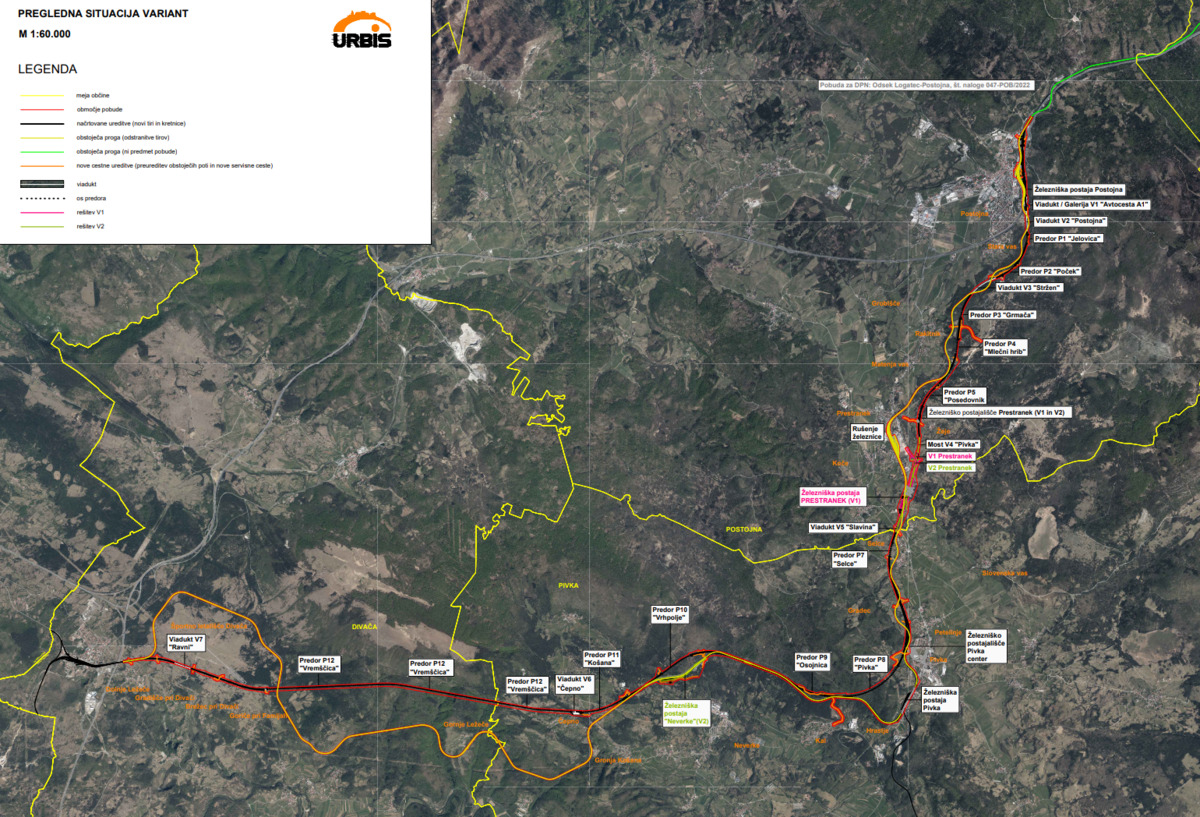 Meja obdelave poteka med postajama Postojna in Divača (vendar ne vključuje same postaje Divača). Načrtovana trasa je od obstoječe proge krajša za cca. 7,3 km. Potovalni časi vlakov se bodo skrajšali za okrog 16 minut. Obstoječe projektne hitrosti znašajo med 70 in 85 km/h, načrtovane se bistveno povišajo, in sicer na najmanj 140 km/h (150 km/h za lahke potniške vlake) oz. na veliki večini trase na najmanj 150-160 km/h (160 km/h za lahke potniške vlake).