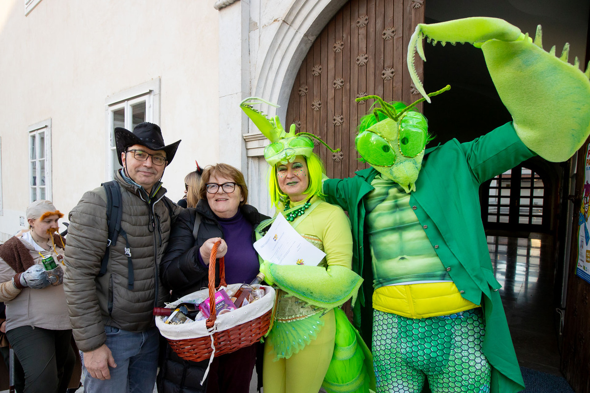 Posebne čestitke namenjamo letošnjim nagrajenim skupinam: Prostovoljnemu gasilskemu društvu Postojna z masko Zeleni prehod, Prostovoljnemu gasilskemu društvu Studenec z masko Koline, Pustni skupini iz Škofjana pri Kopru z masko Bogomoljke, Domu upokojencev Postojna, Domu na Krasu OE Postojna in Društvu VEZI.