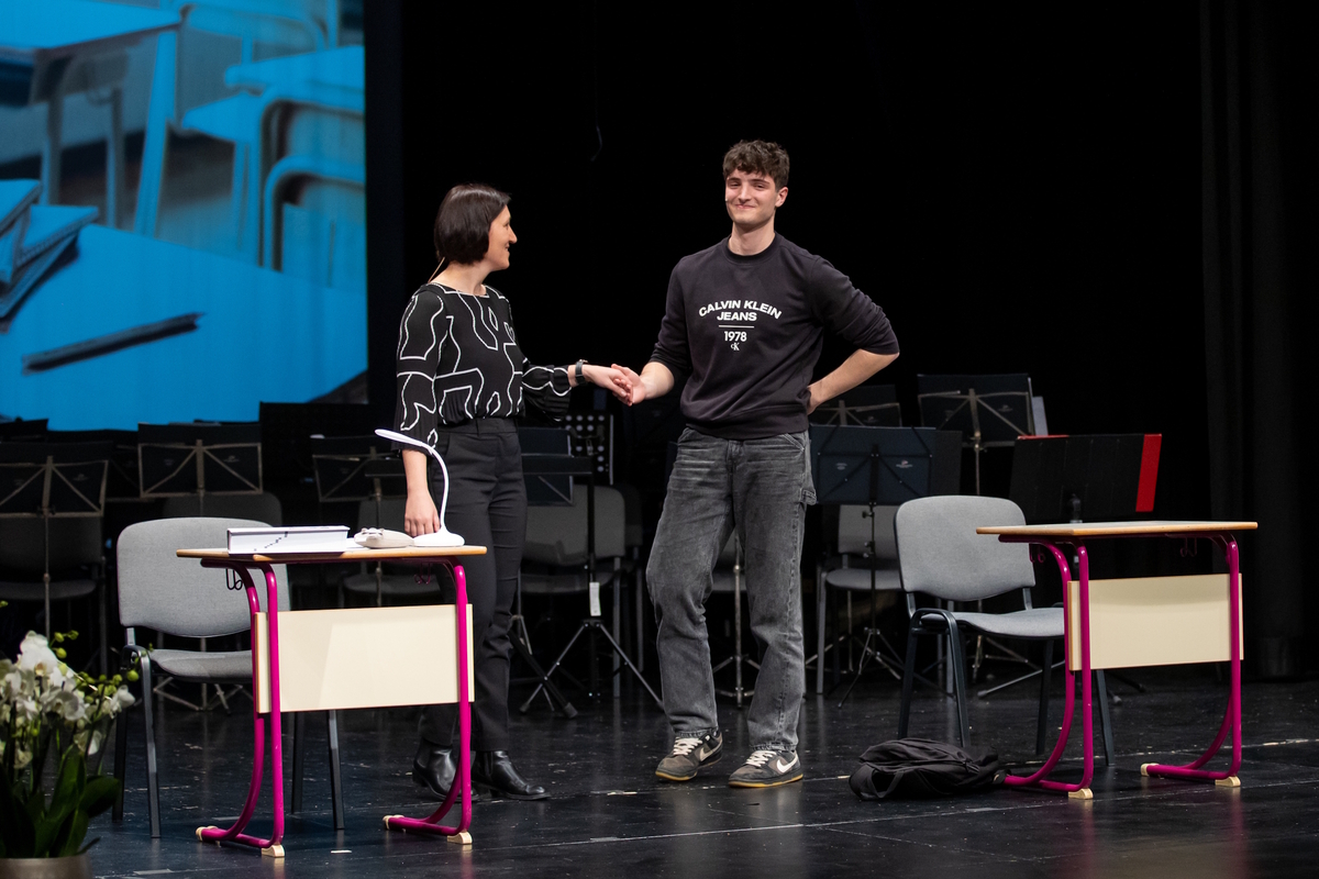 Kulturni program je s prepletom besedne, glasbene in dramske umetnosti na odru povezal dijake in profesorje, bivše in sedanje, preteklost in prihodnost. Občinstvo je najprej prisluhnilo recitalu poezije, nato pa je vstopilo kolesje »časovnega stroja«, ki se je zavrtel vse do začetkov, ko je leta 1945 knjiga prvič ponosno sedla v postojnske srednješolske klopi, in nas pripeljal do sodobnosti, do vsega, čemur smo priča danes. Z dvema skladbama je večer obogatil Jure Počkaj z zasedbo Opera Rockstar. O življenju med katedrom in klopjo, dijaškem vsakdanu in poslanstvu učiteljskega poklica sta v dramski točki spregovorila dijak in profesorica. Večer je zaokrožila skupna pesem: pevski zbor dijakov in zaposlenih je ob spremljavi Big banda zapel zimzeleno Uro brez kazalcev.