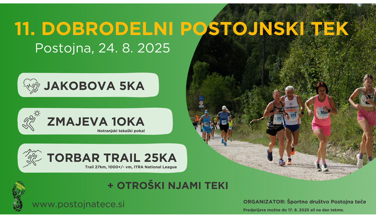 V nedeljo, 24. avgusta 2025, društvo Postojna teče organizira 11. dobrodelni Postojnski tek.