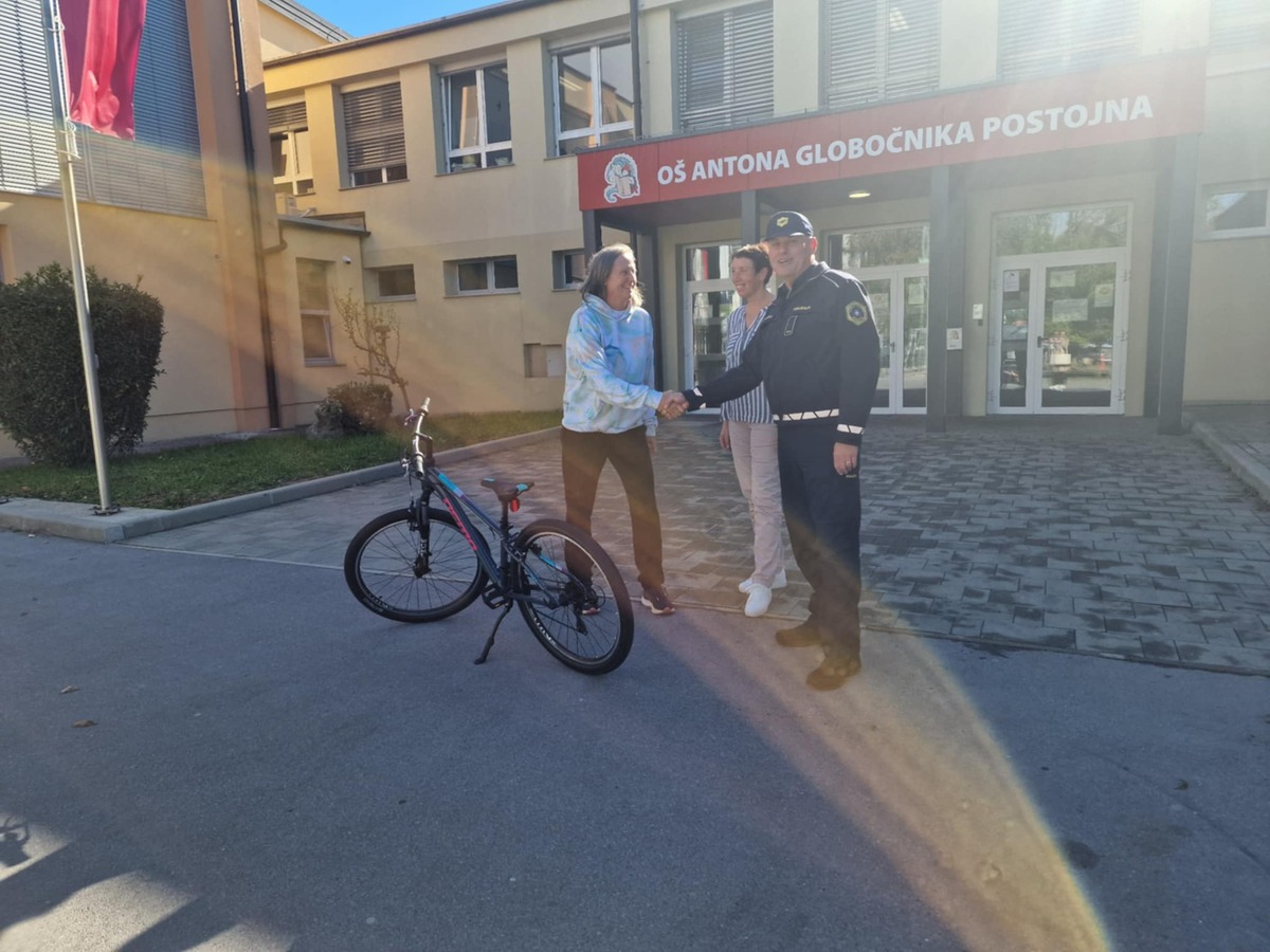 - Osnovna šola Miroslava Vilharja Postojna je prejela eno novo kolo in bon za servis rabljenih koles, s čimer bodo lahko poskrbeli, da bodo šolska kolesa vedno tehnično brezhibna.