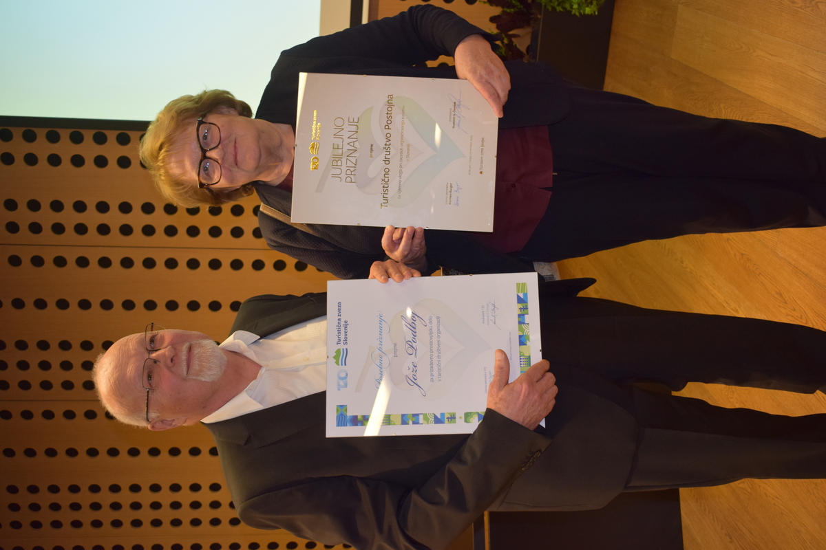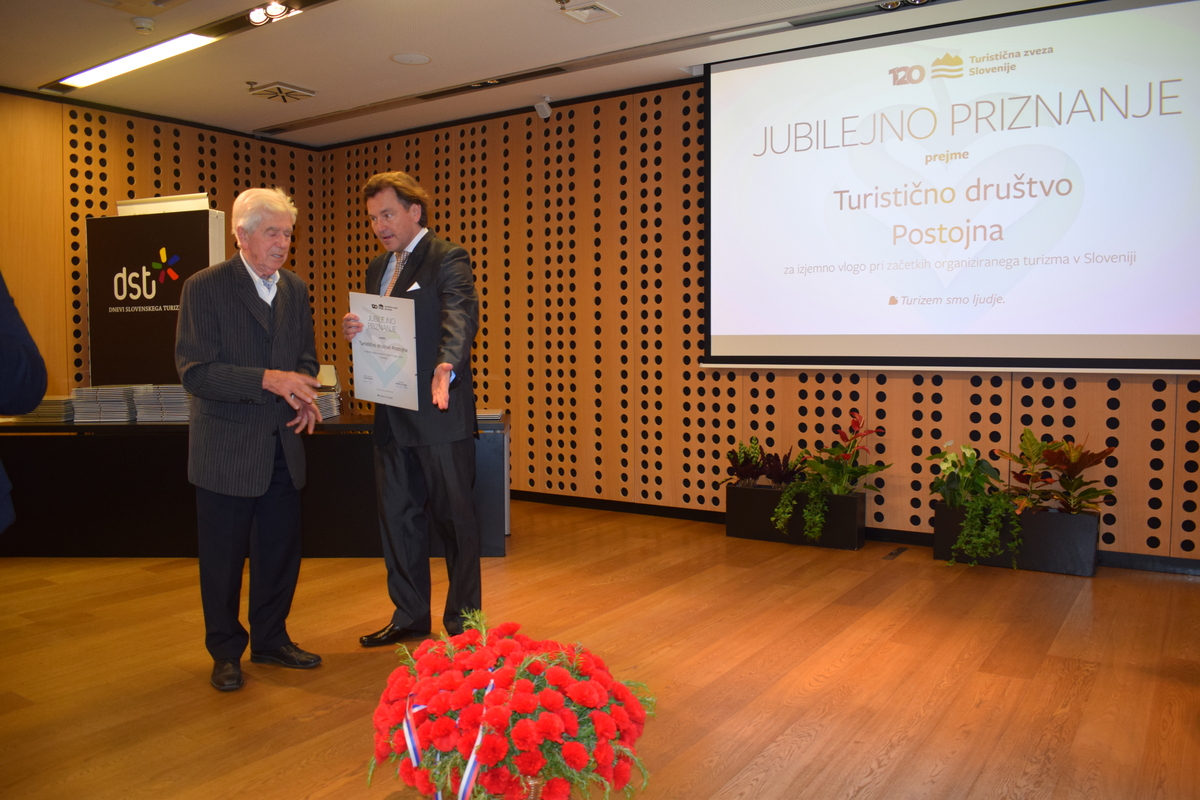 Turistično društvo Postojna je prejelo dvoje priznanj. Jubilejno priznanje za izjemno vlogo pri začetku organiziranega turizma v Sloveniji je TD Postojna prejelo z obrazložitvijo: Leta 1883 je bilo ustanovljeno Društvo za olepšavo postojnskega trga in v povzdigo tujskega prometa , prvo s pravili v slovenščini in nemščini. Glavni razlog za turistični razvoj je bila Postojnska jama, ki je privabljala obiskovalce že od leta 1825. Po odprtju južne železnice leta 1857 se je obisk podvojil. Društvo je skrbelo za urejenost kraja in razvoj ponudbe za turiste. Postojna je kmalu postala eno najbolj obiskanih turističnih središč Slovenije.