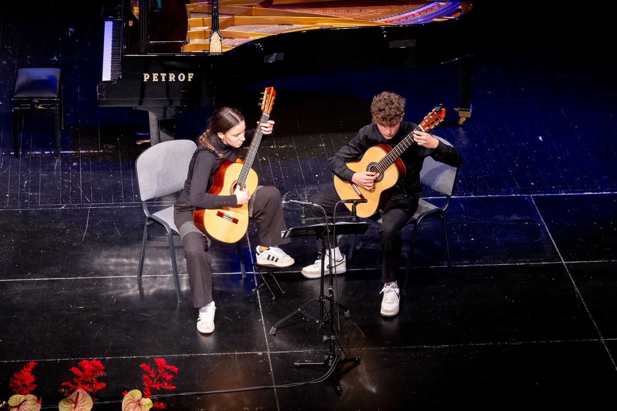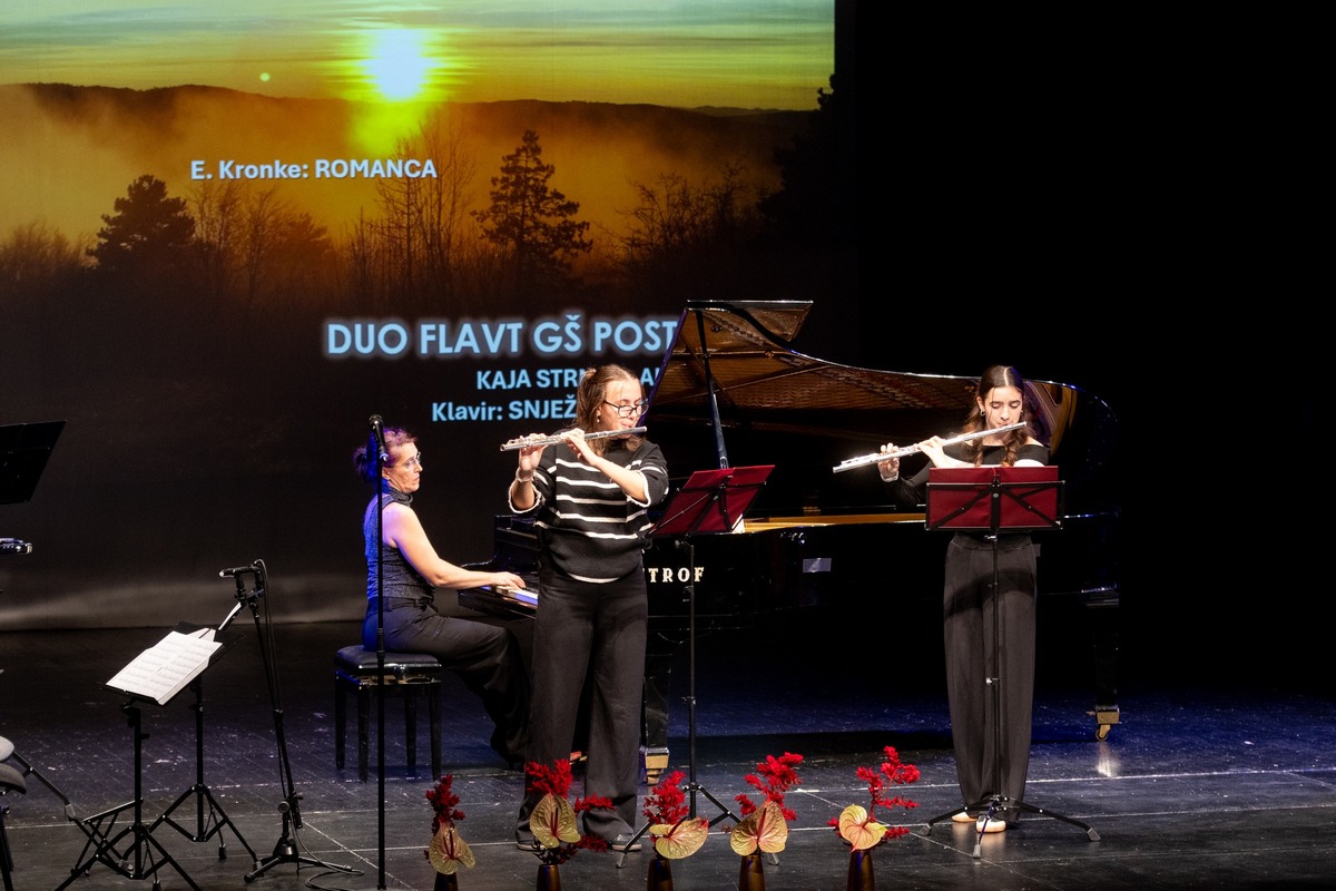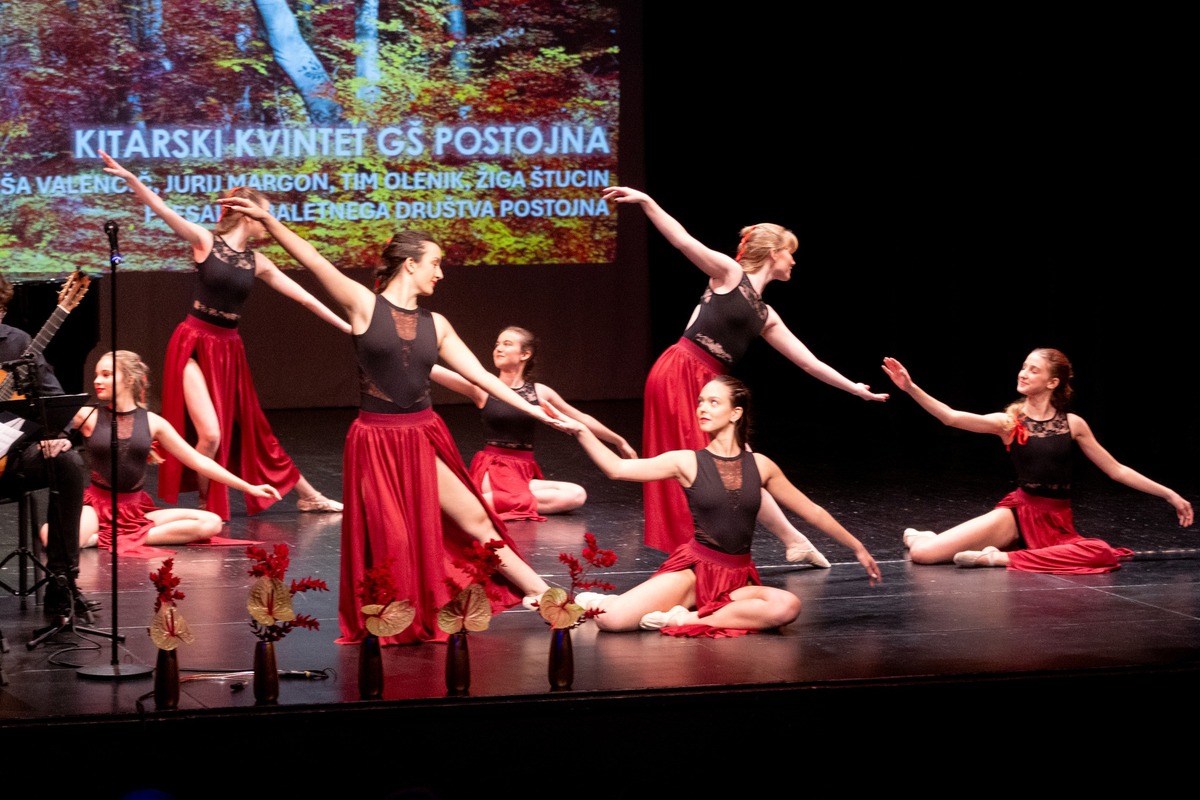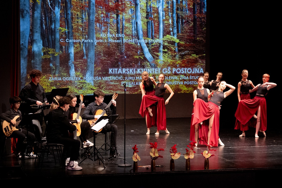Na odru so se predstavili tudi nadarjeni učenci Glasbene šole Postojna. Sonato anonimnega skladatelja je izvedel duo kitaristov Zarja Ogrizek in Tim Olenik, pod mentorstvom Nataše Črnugelj. Romanco E. Kronkeja sta na flavti zaigrali Kaja Strand in Alja Ravnik, mentorice Suzane Furlan Mitev, ob klavirski spremljavi Snježane Pleše Žagar. Poseben umetniški poudarek večera je bil namenjen plesu. Mlade plesalke iz Baletnega društva Postojna, Noa Bavdek, Adelina Džebić, Natali Jocić, Lea Maslo, Iva Mislej, Zala Perko, Zarja Požar in Nika Sajovic so uprizorile točko »Ko sva eno«, koreografinje Mire Marić. Spremljal jih je kitarski kvintet, v katerem so nastopili Jurij Margon, Zarja Ogrizek, Maruša Valenčič, Tim Olenik, Žiga Štucin in Blaž Vidmar z zvončki, pod mentorstvom Nataše Črnugelj. Sledila je še plesna točka iz baleta Faust, Valpurgina noč (III. Allegretto), v izvedbi balerine Eve Mekina pod koreografskim vodstvom Nike Lipolt.