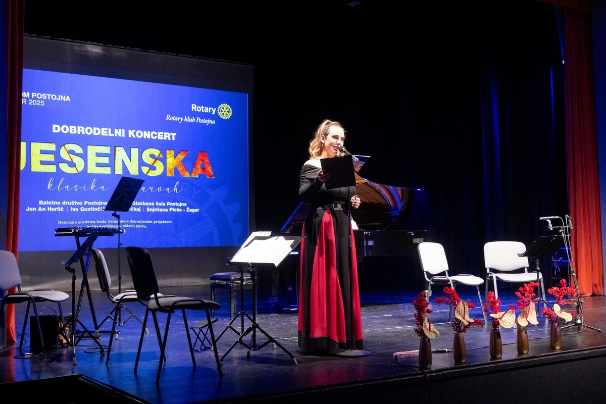 Kulturni dom Postojna je v soboto, 22. novembra, zaživel v toplih barvah glasbe in dobrodelnosti. V Rotary klubu Postojna so tudi letos izvedli tradicionalni dogodek Jesenska klasika v barvah, s katerim so zbirali sredstva za dobrodelne projekte in štipendijski sklad kluba. Na odru so nastopili Baletno društvo Postojna, učenci Glasbene šole Postojna, pianistka Snježana Pleše Žagar, štipendista kluba Jon An Herlič in Ivo Gustinčič ter član kluba baritonist Jure Počkaj.