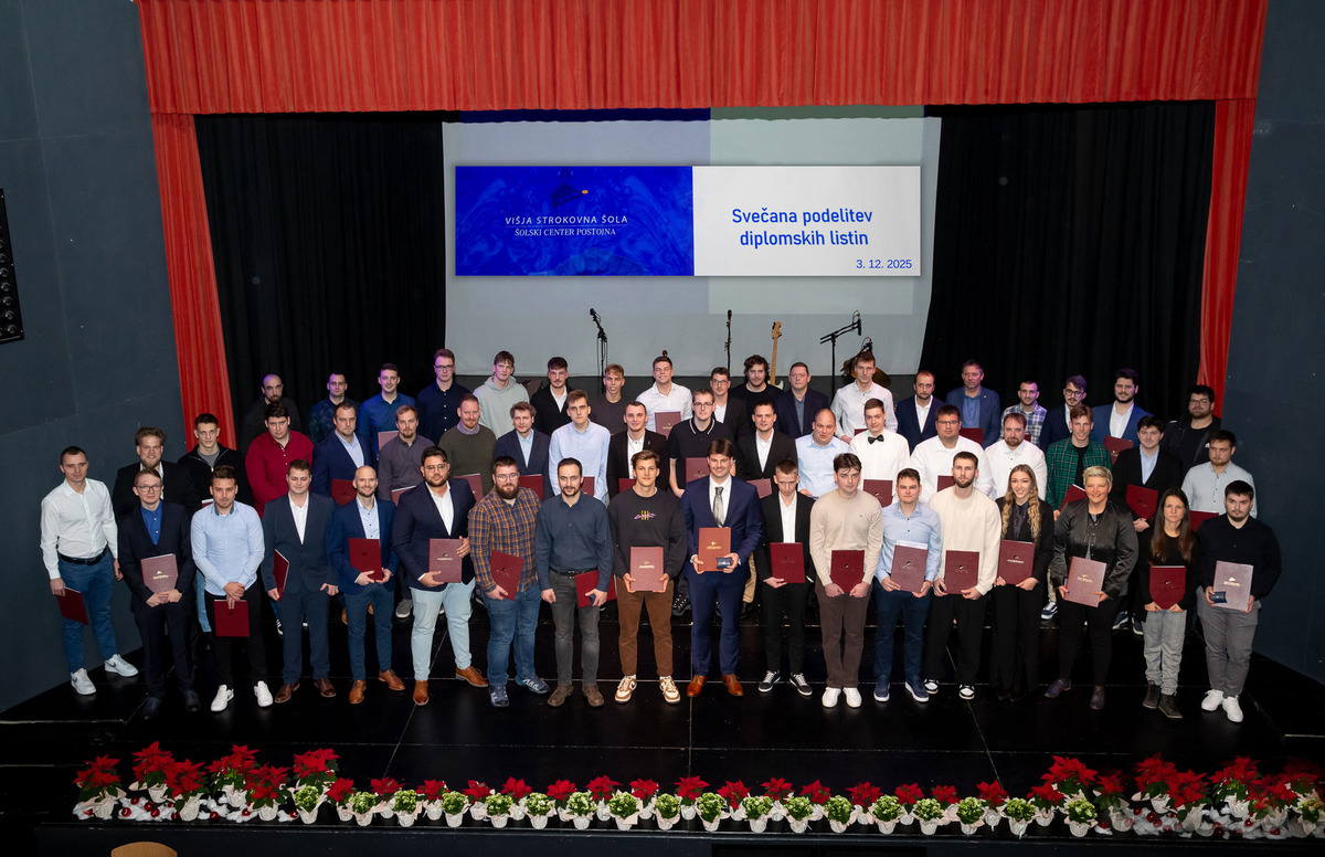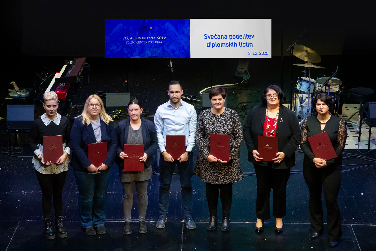 Prejšnji teden je v Kulturnem domu Postojna potekala svečana podelitev diplom, ki je ponovno združila diplomante, njihove najbližje ter goste Višje strokovne šole Postojna. Dogodek je minil v prijetnem in slovesnem vzdušju, polnem ponosa, zadovoljstva in iskrenih čestitk. Zbrane so nagovorili govorniki, ki so diplomantom namenili spodbudne misli za njihove prihodnje poklicne poti.