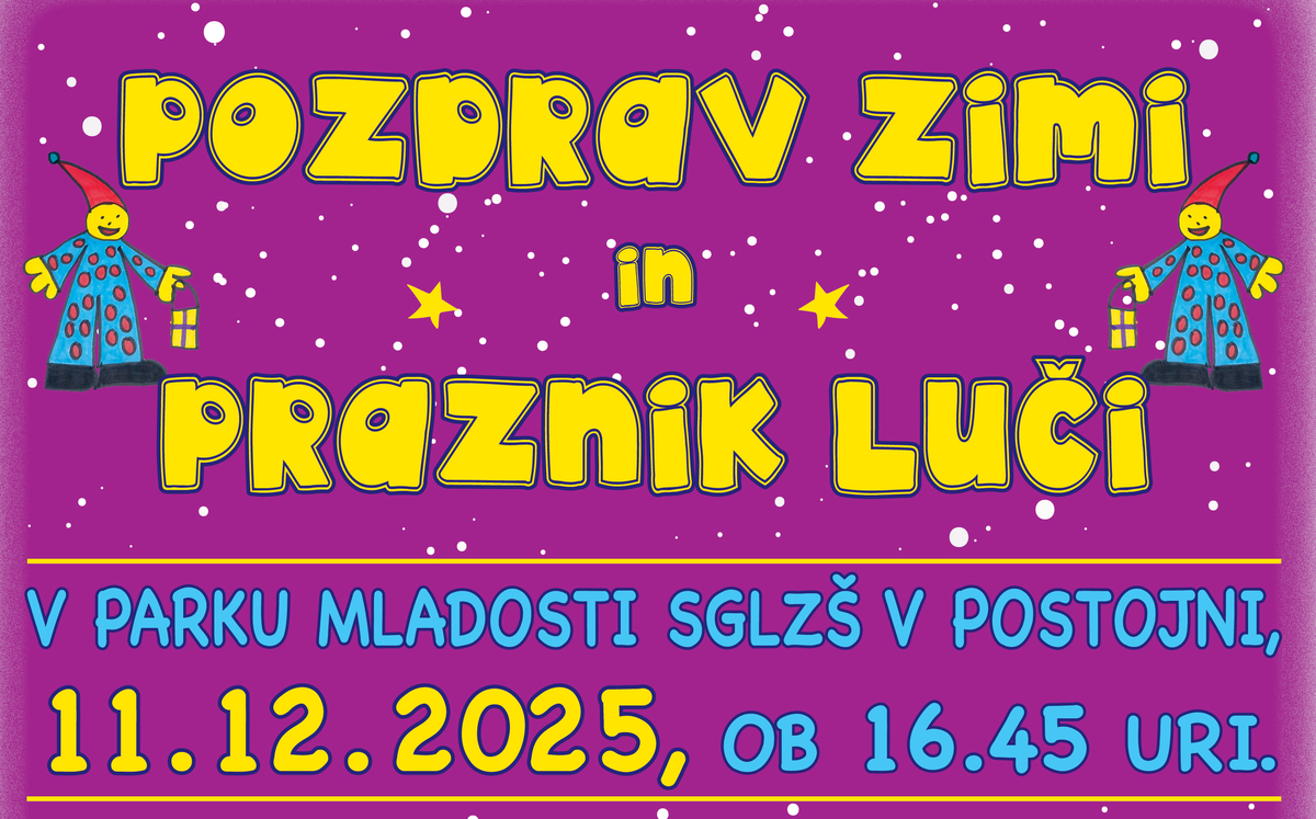 Danes od 16.45 se bo v centru Postojne odvijala praznična otroška prireditev Pozdrav zimi in praznik luči. Bogat program s številnimi nastopajočimi se prične ob 16.45 v parku SGLZŠ, nato pa se ob spremljavi glasbenih nastopov in animatorjev seli po Tržaški cesti do Trga padlih borcev, kjer sledi zaključek.