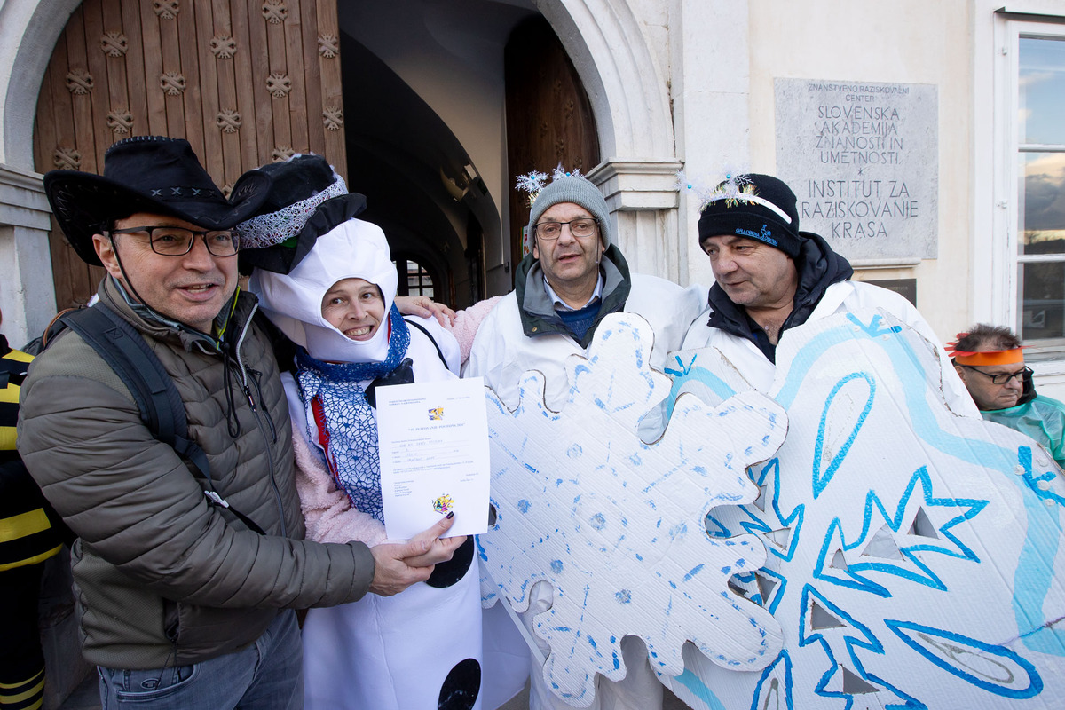 Posebne čestitke namenjamo letošnjim nagrajenim skupinam: Prostovoljnemu gasilskemu društvu Postojna z masko Zeleni prehod, Prostovoljnemu gasilskemu društvu Studenec z masko Koline, Pustni skupini iz Škofjana pri Kopru z masko Bogomoljke, Domu upokojencev Postojna, Domu na Krasu OE Postojna in Društvu VEZI.