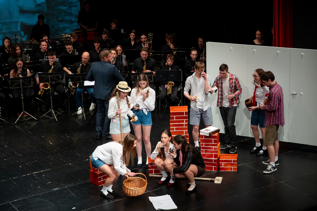 Kulturni program je s prepletom besedne, glasbene in dramske umetnosti na odru povezal dijake in profesorje, bivše in sedanje, preteklost in prihodnost. Občinstvo je najprej prisluhnilo recitalu poezije, nato pa je vstopilo kolesje »časovnega stroja«, ki se je zavrtel vse do začetkov, ko je leta 1945 knjiga prvič ponosno sedla v postojnske srednješolske klopi, in nas pripeljal do sodobnosti, do vsega, čemur smo priča danes. Z dvema skladbama je večer obogatil Jure Počkaj z zasedbo Opera Rockstar. O življenju med katedrom in klopjo, dijaškem vsakdanu in poslanstvu učiteljskega poklica sta v dramski točki spregovorila dijak in profesorica. Večer je zaokrožila skupna pesem: pevski zbor dijakov in zaposlenih je ob spremljavi Big banda zapel zimzeleno Uro brez kazalcev.