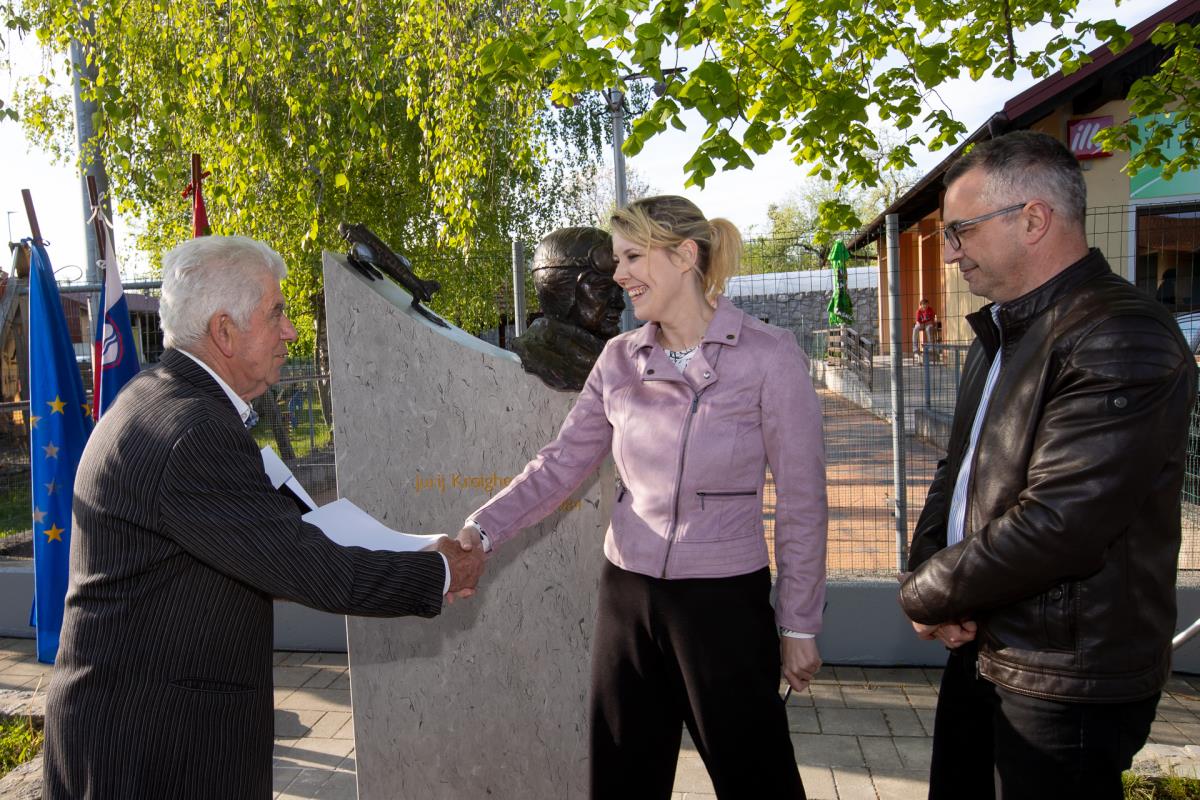 Občini Postojna se je za posluh zahvalil tudi neposredni 'sosed' obeležja, krajan Hrašč, Srečko Šajn, ki je bil pobudnik tega projekta: »Moj sosed si zasluži to obeležje, ki je velik dosežek in oddolžitev tej izjemni osebnosti. Jurij Kraigher je namreč tvegal svoje življenje, da je ohranjal sestreljene pilote, borce in Slovence.«