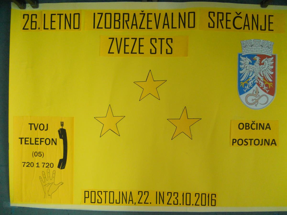 Letos smo v Postojni gostili okrog 150 telefonskih svetovalcev iz vseh koncev Slovenije. Naše izobraževanje je potekalo v Kulturnem domu Postojna, na temo » Žalost in krivda«, prostor za izvedbo delavnic nam je odstopila Ljudska univerza Postojna, prostor za namestitev in druženje prostovoljcev pa je ponudil Hotel Sport Postojna, Muzej Krasa Postojna pa je udeležencem izobraževanja omogočila brezplačen ogled muzeja.