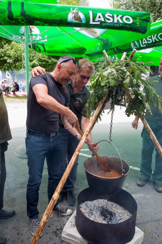 Potekalo pa je še eno tekmovanje in sicer v kuhanju lovskega golaža. V kotličkih je brbotalo, kuharji pa so gostljavo vsebino vneto mešali. Kot je izgledalo, se je kuha jedi, ki jih je kasneje ocenila strokovna komisija, bližala koncu. Kakšne sestavine so dodali golažu smo poskušali izvedeti pri lovcih Lovske družine Hrenovice; ni nam uspelo, saj je glavni kuhar Janez Umek je to skrivnost obdržal zase. Za pravo kulinarično razvajanje pa so poskrbeli kuharji LD Predatorji Črnojamski, ki so – po njihovih besedah – tekmovanje vzeli malo po svoje. Štiri vrste mesa in vsi dodatki za sanjski golaž. Pomirjeni smo odšli, ko so nam zagotovili, da lisica in jazbec v njihov kotel nista stopila.