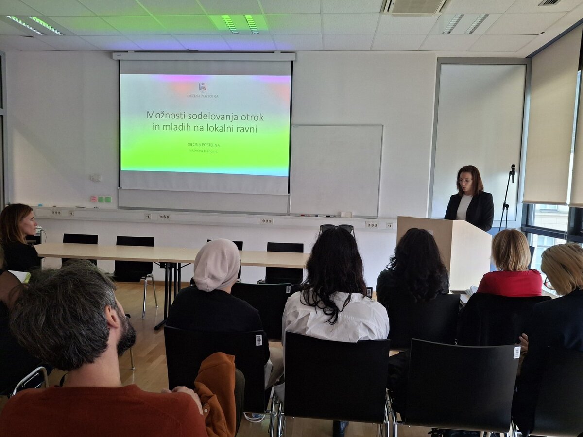 Na dogodku je predstavila dobro prakso vključevanja otrok in mladine v oblikovanje lokalnih politik v Občini Postojna, ki že vrsto let sistematično spodbuja sodelovanje mladih pri soustvarjanju družbenega in okoljskega razvoja skupnosti.