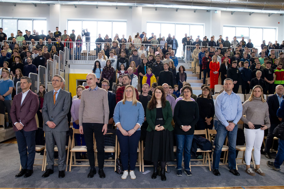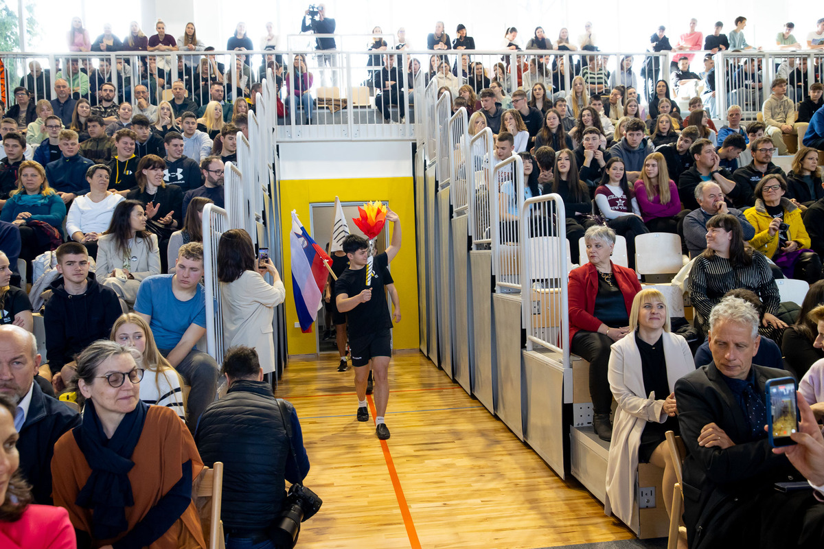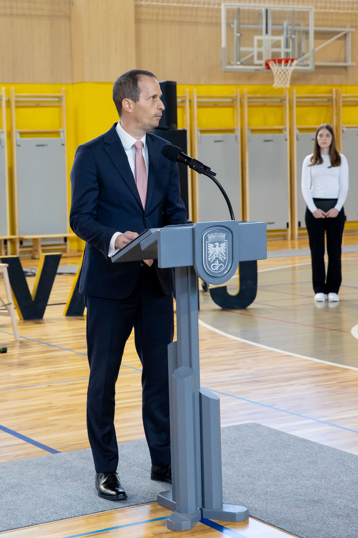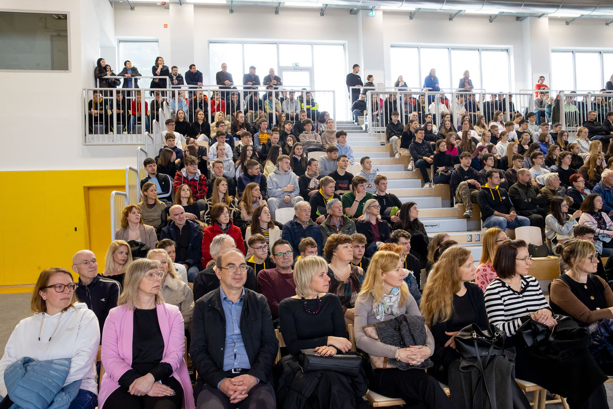 Ravnatelj Miha Uhelj je v nagovoru poudaril dolgo pot do nove dvorane in pomen skupnega prizadevanja: »Danes ne odpiramo samo novih vrat. Danes odpiramo nov prostor priložnosti, nov prostor skupnosti in – kar je najpomembnejše – nov prostor mladih.« Spomnil je tudi na skoraj dve desetletji iskanja rešitev za športno vzgojo: »Pred osemnajstimi leti je naša stara telovadnica zaradi nevarnosti morala zapreti svoja vrata. Od takrat naprej smo telovadili, kjer koli se je le dalo – v avli dijaškega doma, v učilnicah, v manjših prostorih, zunaj v vsakem vremenu.«